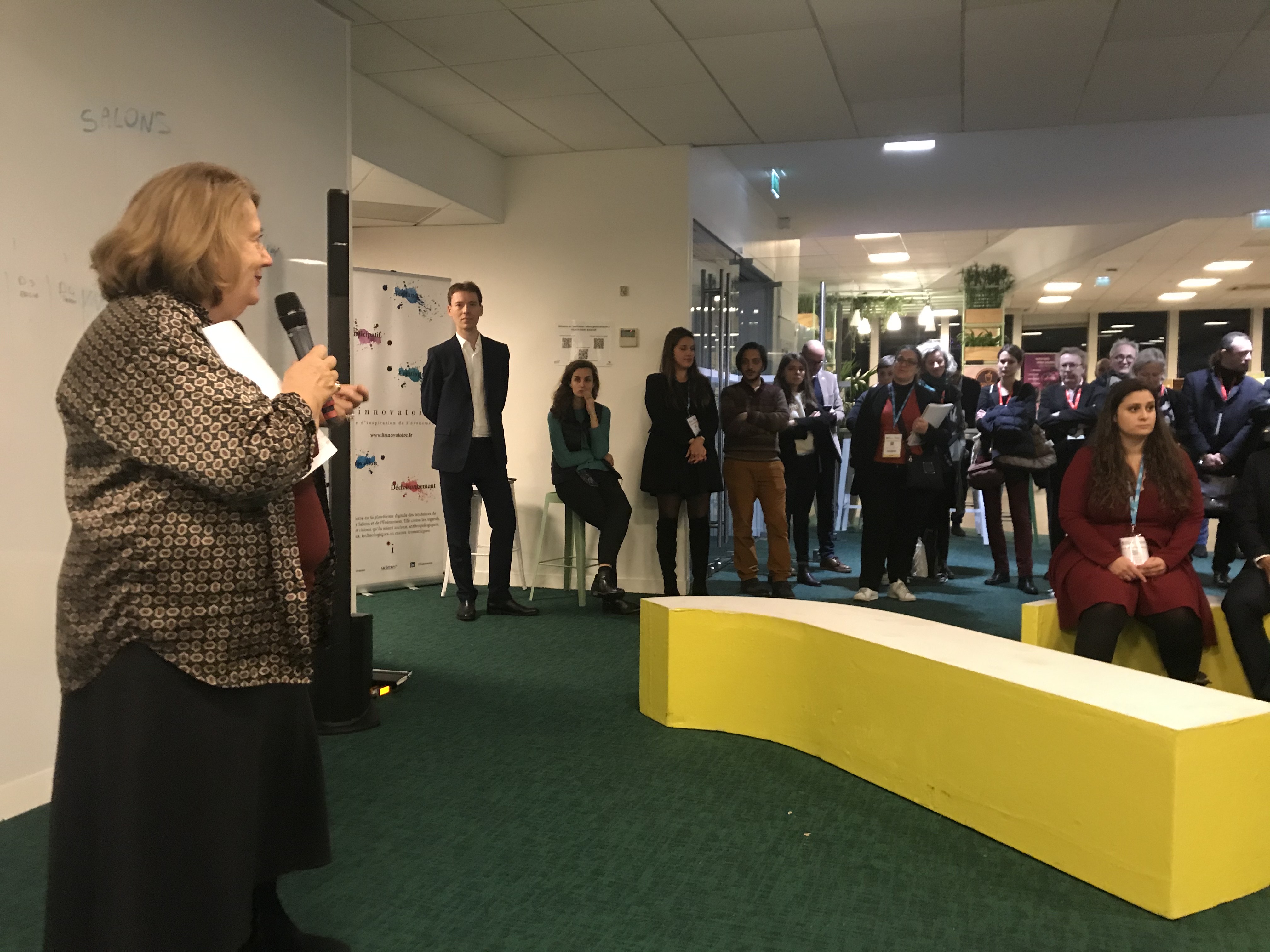 On Wednesday, November 20th, during the Mayors and Local Authorities Fair, GreenTech Verte organized a full day dedicated to “Territorial Commitment to Green Innovation.” Organized in two parts, this event aimed to create a favorable environment for meetings and the creation of new collaborations between our startups and public procurement decision-makers. During the day, startups Urban Canopee, Lumi’in, Qista, Deepki, Electric 55 Charging, and Odyssée Durable were able to benefit from individual meetings with elected officials and public procurement stakeholders. A pitch session was also organized for a group of elected officials. Afterward, a friendly cocktail reception was held, where a larger number of startups with the GreenTech Verte label had booths. The evening was opened by Thierry Courtine, Deputy Director of Research and Innovation at the Ministry; then by our partners: Pierre Jarlier, Vice-President of the AMF, as well as Bettina Laville, President of Committee 21, who came to present the new practical guide “For the appropriation of the 2030 Agenda by French communities.”